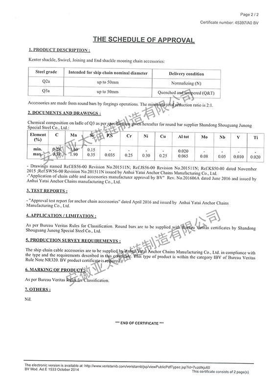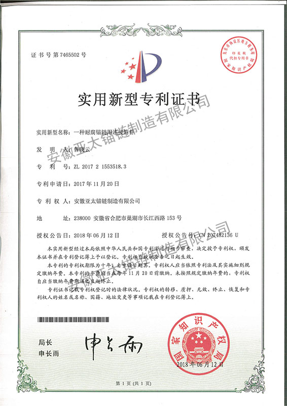 安徽亞太錨鏈制造有限公司是國(guó)家高新技術(shù)企業(yè),也是國(guó)家GB/T 549-2017《電焊錨鏈》標(biāo)準(zhǔn)的起草和制定單位之一。公司旗下設(shè)有錨鏈分廠、浮標(biāo)分廠、舾裝件分廠等多個(gè)分廠。公司專業(yè)從事φ12.5mm-φ107mm二、三級(jí)船用錨鏈、浮標(biāo)錨鏈、錨鏈附件,錨、船舶曬裝產(chǎn)品、航標(biāo)、系船浮、船型標(biāo)、多種規(guī)格海洋監(jiān)測(cè)浮標(biāo)及航標(biāo)燈等產(chǎn)品的生產(chǎn)、安裝和服務(wù)。目前公司的產(chǎn)品銷往全國(guó)各地船廠、碼頭、航標(biāo)處、航道局、海洋局,并已走上國(guó)際市場(chǎng),如東南亞、中東、歐美等國(guó)家。